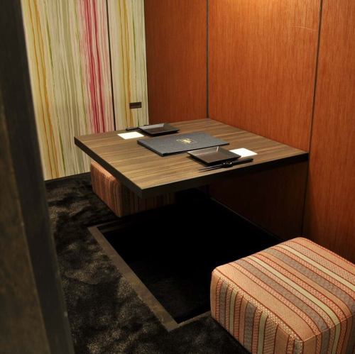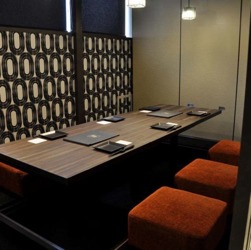 接待やデートなどに最適な2名様用完全個室。和情緒のあるスタイリッシュなプライベート空間で、特別な時間をごゆっくりお過ごしください。